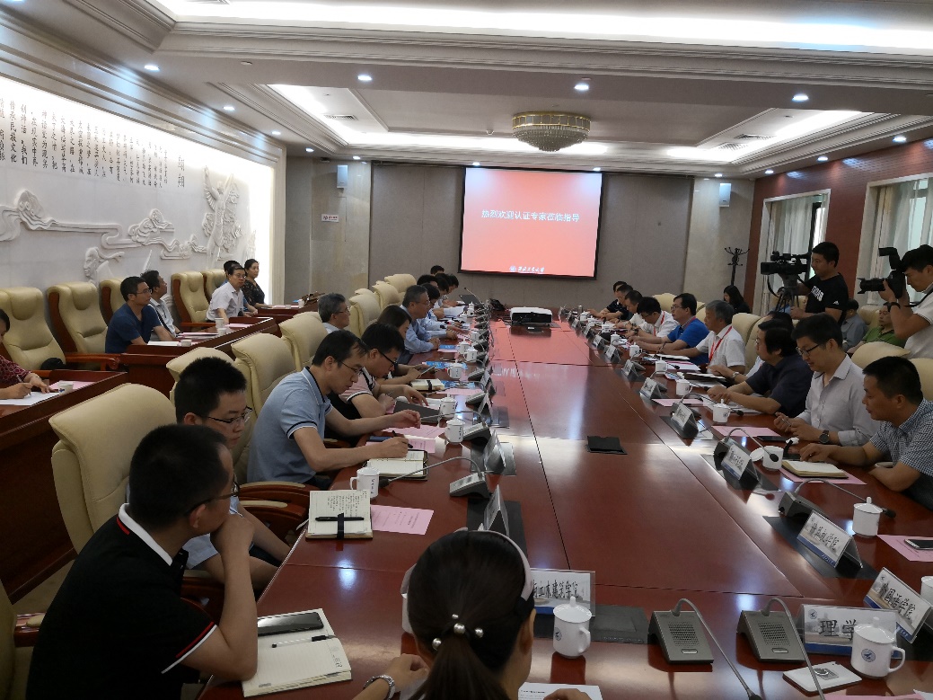 工程教育认证专家组组长吴波教授主持见面会,介绍了专家组成员,并对专业认证现场考查的目的与内容作了说明。