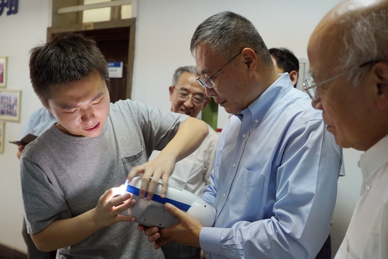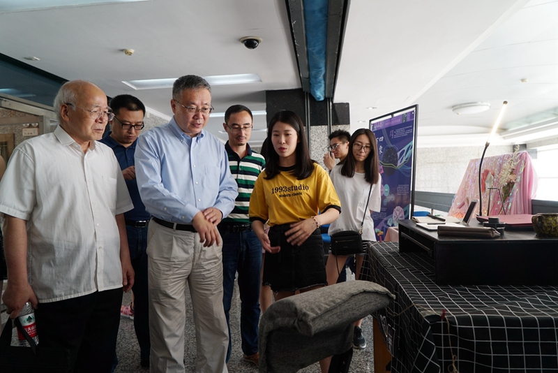 开幕式结束后,各位领导与来宾参观作品展。本次展览汇集了2018届工业设计专业与产品设计专业的毕业设计作品,范围涵盖载人潜水器、特种车辆、特种飞行器、家用电器、工业装备、文创等,种类丰富,风格多样,用最直观的方式展示本科学子四年的所学所思所得,体现对设计问题的思考与创新的活力。设计者通过模型、展品、多媒体等多种方式阐述设计方案,并为来宾详细介绍自己的作品。本次毕业设计作品展包括跨专业组,通过与机械设计等专业的结合,将工业设计、产品设计方法带入机械设计领域,解决系统规划、人机工程、交互等实际问题,设计方案获得好评。