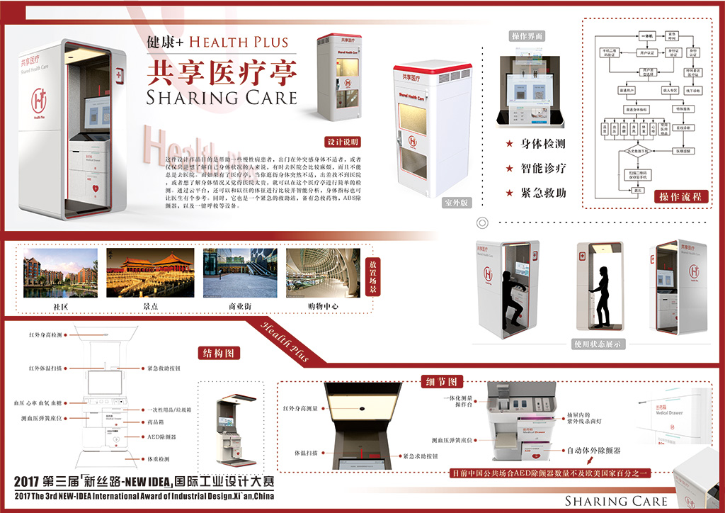 获奖作品主题主要为环境保护、儿童与老年人关怀、医疗、交通、照明等。特等奖获奖作品为《共享医疗亭》,方案针对突发医疗事件,提出社会化自助医疗设备设计概念,在信息化智能化技术的支持下,更好的服务于社会生活。评委评价该作品针对社会医疗健康问题,深入分析、巧妙构思,方案适用面广,可进一步转化为服务于各种环境的医疗创新产品。其他获奖作品,如《高楼消防飞行器》、《穿戴式条码扫描器》、《智慧社区安防机器人》、《微型无障碍洗漱间》等,均在敏锐发现生活、环境、医疗等领域的“痛点”基础上,展开创新思维,提出了解决问题的新的途径,并落实在设计方案中。