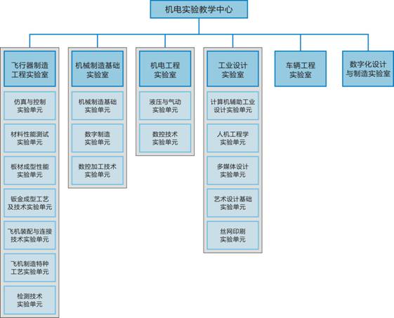 西北工业大学机电实验教学中心由飞机制造工艺与装备实验室、机械制造基础实验室、机电工程实验室、车辆工程实验室、工业设计实验室及数字化设计与制造实验室等六个实验室组成,各实验室根据各专业课程设置及实验教学需要分设实验单元。主要承担机电学院飞行器制造工程、机械设计及其自动化、工业工程、工业设计及车辆工程共五个专业的本科实验教学,同时兼顾研究生实验教学及科研实验的需要。